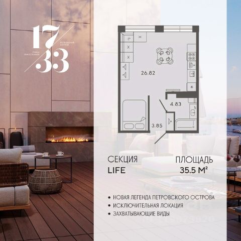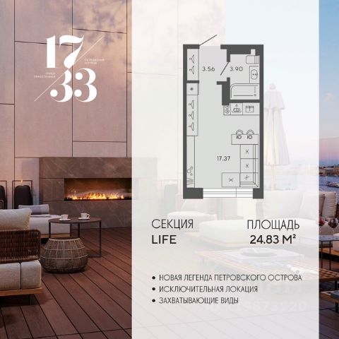 Сдаем в 2026 году! Апартамент 286 в Комплексе "17/33 Петровский остров" О проекте: Премиальный комплекс резиденций для истинных ценителей изысканной архитектуры, непревзойденного сервиса и необыкновенной панорамы Санкт-Петербурга. Уникальное расположение между Малой Невой и Петровским прудом подарит будущим резидентам неповторимое ощущение жизни на собственном уединенном острове. Уникальная локация. Проект расположен в объятьях главных островов Петербурга — Петроградской стороны, Васильевского и Крестовского, и в самой зеленой и выигрышной части Петровского — на первой линии Малой Невы, между величественной рекой и тихим Петровским прудом. До ключевых точек притяжения, любимых парков, шопинга и развлечений — пара минут на авто. 100% видовых апартаментов. Виды на Малую Невку, на Петровский пруд.; Проект разделен на три формата: Club, Life, Residence; 5-8 этажей; высота потолка до 7 метров; 1000 м2 общественных пространств; фитнес и СПА; кинозал и зал для семейных торжеств; коворкинг и детский клуб; лаундж с библиотекой; терраса площадью 120 м2 для резидентов; ELEMENT создаёт инновационные жилые и коммерческие объекты в Санкт-Петербурге и Москве, которые устанавливают новые стандарты эффективной жизни в мегаполисах.