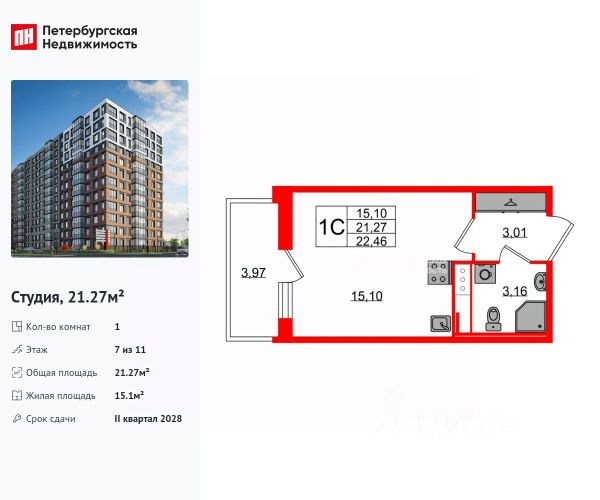 Цена действует при 100% оплате и на определенные ипотечные программы. Подробности — в отделе продаж по телефону. Продается студия в ЖК "Октябрьская набережная" на 7 этаже. Общая площадь составляет 21.20 кв. м. Квартира с чистовой отделкой . Жилой комплекс "Октябрьская набережная" располагается по адресу Санкт-Петербург, Невский. Октябрьская набережная - жилой комплекс на берегу Невы, который отличается живописными видами и удобным местоположением: в окрестностях ЖК есть всё необходимое для комфортной жизни. Расположение: • 2 минуты пешком до набережной Невы; • 7 минут до станции метро "Улица Дыбенко" на автомобиле; • 8 минут до Большого Обуховского моста на автомобиле; • 15 минут до ТРК "Лондон Молл" на автомобиле. Будущие жильцы могут обустроить квартиру по своему вкусу: предлагается 2 вида отделки - уютный темный "Comfort Wood" и легкий светлый "Comfort Stone". Отделка выполняется из качественных материалов: прочный ламинат с фактурой светлого дерева или белого камня, светлые обои под покраску, лаконичные межкомнатные двери. Вход в парадные расположен на уровне земли и создает доступную среду для пожилых людей, людей с ограниченными возможностями и мам с колясками. На цокольном этаже находятся кладовые, которые позволят освободить пространство квартиры от лишних вещей. Во всех парадных расположены колясочные, рядом с ними - велопарковки. На территории комплекса есть всё для любителей активного отдыха: спортивные площадки, уличные тренажеры, велодорожки, места для игры в баскетбол и волейбол. Спортсмены могут насладиться живописными видами во время пробежки вдоль набережной. В зелёных и облагороженных дворах есть всё и для семей с детьми: тематические площадки, детский сад и даже школа. Комфортная среда для питомцев - еще одно преимущество "Октябрьской набережной": рядом с домами находится площадка для выгула собак. Для удобства автомобилистов на территории комплекса устроены крытые паркинги с безопасными охраняемыми выездами и большим количеством машино-мест. В пешей доступности расположены супермаркеты, кафе, парикмахерские, отделения банков. Преимущества: • Первая береговая линия • Двор без машин • Доступная среда • Развитая инфраструктура • Школа и детский сад во дворе • Близость к метро Успейте приобрести квартиру на выгодных условиях! Чтобы узнать подробности, обращайтесь за консультацией по телефону.