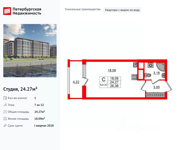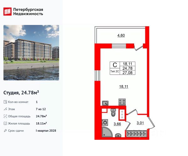 Цена со скидкой до 30% в прямой продаже от застройщика — только в этом месяце. На апартаменты действует беспроцентная рассрочка. Роскошные виды на Неву. Апартамент-студия в комплексе класса бизнес-лайт Зум на Неве на 7-м этаже. Общая площадь 23,36. Без отделки. Зум на Неве расположен в новом месте силы рядом с центром города на первой линии Октябрьской набережной в Невском районе, всего в 7 км от исторической части Санкт-Петербурга. Большой выбор эргономичных и максимально продуманных планировок позволит каждому найти вариант по душе. Панорамные виды на Неву, благоустроенные дворы, детская игровая комната, подземный паркинг, коммерческие зоны на первом этаже, это и многое другое делает Зум на Неве идеальным местом для жизни. Особенности: - Панорамные виды на Неву и город; - 10 мин. до Парка Строителей, 15 мин. до Лондон-молла, Ленты, Максидома, 15 мин. до метро "ул. Дыбенко", 12 мин. до КАД, 10 мин. до центра; - Единая архитектурная концепция. Сдержанные и монументальные фасады в неоклассическом стиле; - Парадный лобби для жильцов. Единый вход в комплекс с администратором, зоной ресепшн и охраной, зоной для бесконтактной доставки посылок и еды; - Подземный отапливаемый паркинг с доступом из парадной; - Доступно 3 варианта отделки на выбор: черновая, предчистовая (White Box) и чистовая; - Зоны отдыха для взрослых и детей, Wi-Fi-покрытие во дворе и в паркинге, зоны для питомцев, арт-объекты и много другое. В шаговой доступности вся необходимая инфраструктура от детских садов и школ до супермаркетов и салонов красоты; - Все происходящее контролируется видеокамерами, а покой внутренней территории и безопасность ваших детей гарантируется полным отсутствием транспорта во дворах в концепции "без машин".