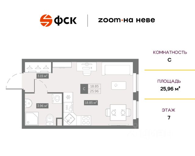 Цена со скидкой до 30% в прямой продаже от застройщика — только в этом месяце. При покупке апартаментов - паркинг за полцены. На все апартаменты действует беспроцентная рассрочка. Купите на распродаже! Покупка недвижимости в Zoom на Неве сейчас со скидкой до 30% позволит через 2 года получить доход до 6 300 000 руб. Роскошные виды на Неву. Апартамент-студия в комплексе класса бизнес-лайт Zoom на Неве на 7-м этаже. Общая площадь 26,94. Предчистовая отделка. Zoom на Неве расположен в новом месте силы рядом с центром города на первой линии Октябрьской набережной в Невском районе, всего в 7 км от исторической части Санкт-Петербурга. Большой выбор эргономичных и максимально продуманных планировок позволит каждому найти вариант по душе. Панорамные виды на Неву, благоустроенные дворы, детская игровая комната, подземный паркинг, коммерческие зоны на первом этаже, это и многое другое делает Zoom на Неве идеальным местом для жизни. Особенности: - Панорамные виды на Неву и город; - 10 мин. до Парка Строителей, 15 мин. до Лондон-молла, Ленты, Максидома, 15 мин. до метро "ул. Дыбенко", 12 мин. до КАД, 10 мин. до центра; - Единая архитектурная концепция. Сдержанные и монументальные фасады в неоклассическом стиле; - Парадный лобби для жильцов. Единый вход в комплекс с администратором, зоной ресепшн и охраной, зоной для бесконтактной доставки посылок и еды; - Подземный отапливаемый паркинг с доступом из парадной; - Доступно 3 варианта отделки на выбор: черновая, предчистовая (White Box) и чистовая; - Зоны отдыха для взрослых и детей, Wi-Fi-покрытие во дворе и в паркинге, зоны для питомцев, арт-объекты и много другое. В шаговой доступности вся необходимая инфраструктура от детских садов и школ до супермаркетов и салонов красоты; - Все происходящее контролируется видеокамерами, а покой внутренней территории и безопасность ваших детей гарантируется полным отсутствием транспорта во дворах в концепции "без машин".