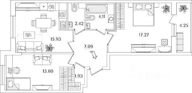 Продается уникальная квартира 2-евро, с высотой потолка до 5 метров в ЖК "Дворцовый Фасад" от застройщика Setl О жилом комплексе и местоположении - Именитый застройщик, гарант высокого качества и надежности. - Один из самых зеленых и экологичных районов Петербурга, вблизи Финского залива - В пределах 10 минут находятся объекты, ради посещения которых люди прилетают со всех концов планеты - Низкоэтажная застройка позволит совместить комфорт мегаполиса и уют загородной жизни - Современный жилой комплекс, оснащенный всем необходимым. Детские и спортивные площадки, прогулочные зоны и собственные парки на территории, закрытые дворы и подземный паркинг, высокий уровень безопасности и удобства. - Один из самых популярных и продаваемых проектов в Санкт-Петербурге за последние несколько лет О квартире - Квартира с полной чистовой отделкой, вам не нужно будет тратить время на ремонт, а лишь придать обстановке свои неповторимые черты и оттенки - Отличное планировочное решение с большой кухней-гостинной, раздельным санузлом и лоджией - Квартира на последнем этаже с увеличенной высотой потолка от 2.8 до 5 метров. Мало кто может похвастаться таким даже в проектах бизнес и элит уровня. - Сдается во 2 квартале 2026-го года, выдача ключей до конца 2026-го. Условия покупки - Прямая продажа от собственника по договору уступки. - Приобретена в рассрочку, переход на ипотеку возможен. - Все необходимые документы - на руках, полностью готова к сделке. - Расходы по оформлению и сопровождению сделки собственник берет на себя. - Сделка проходит через застройщика, договор готовит он, никаких рисков все прозрачно и безопасно