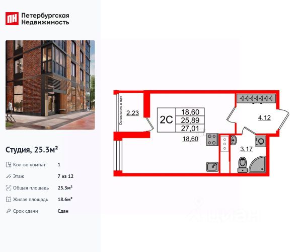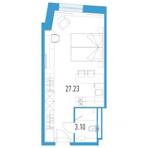 Общая плoщадь кваpтиры - 28,15 кв.м., куда входит: