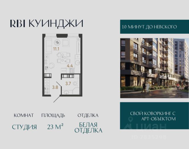 Продаётся квартира-студия площадью 23,2 кв.м на 7 этаже 12 этажного дома (Корпус 6, Секция 4) проекта ПИК Витебский парк. Светлый просторный подъезд на уровне земли, функциональная планировка, большие окна, c отделкой. Жилой квартал "Витебский парк" находится во Фрунзенском районе Санкт-Петербурга, в 15 минутах пешком от метро "Обводный канал". А в 2027 году всего в паре минут от проекта планируют открыть станцию метро "Боровая". В квартал входят 3 детских сада, школа и 7 жилых домов с дворами-парками, куда не могут зайти посторонние люди и заехать автомобили. Школа на 1250 мест и детский сад на 350 мест откроются одновременно с заселением первой очереди, это значит, что жители проекта смогут отдать своих детей в новые образовательные учреждения на территории квартала. Во дворах приятно отдыхать, знакомиться с соседями и даже заниматься йогой, а для детей мы построим детские площадки. Рядом появятся современные спортивные площадки. На первых этажах домов откроются магазины, кафе и другие сервисы. Через весь жилой район протянется широкий пешеходный бульвар для прогулок и спорта. Рядом с "Витебским парком" есть всё для комфортной жизни: магазины, торговые центры, фитнес-клубы, кафе и рестораны, а ещё детские сады, школы, вузы и поликлиника. Артикул 1005575 (Застройщик ООО "СЗ "Лиговский Сити") [cn_sbp_1807595]