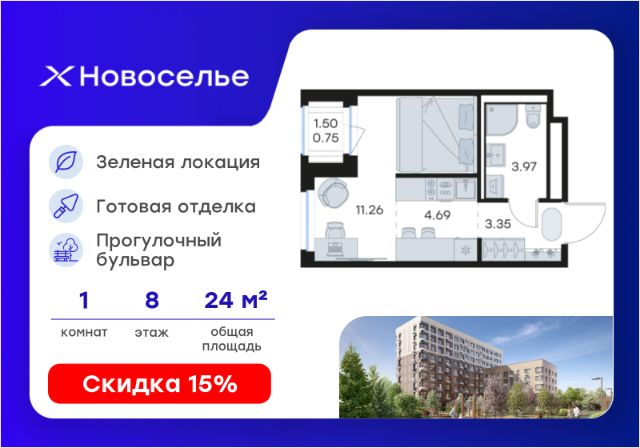 Продаётся квартира-студия площадью 25,9 кв.м на 8 этаже 12 этажного дома (Корпус 4.1, Секция 4) проекта ПИК Таллинский парк. Светлый просторный подъезд на уровне земли, функциональная планировка, большие окна, c отделкой. "Таллинский парк" - проект в Ленинградской области, в районе Новоселье. До станции метро "Проспект Ветеранов" - 15 минут на автомобиле, а до КАД можно доехать всего за 4 минуты. "Таллинский парк" включает 16 жилых домов, детский сад и школу. В проекте появится центральный сквер с обильным озеленением, а через весь квартал протянутся широкие пешеходные бульвары. В зелёных дворах-парках будут оборудованы современные детские и спортивные площадки, обустроены места для отдыха. На первых этажах разместятся магазины, кафе и другие сервисы. Проектом предусмотрены персональные кладовые помещения - это доступный, экономичный и удобный способ хранения сезонных и крупногабаритных вещей. Освободите свою квартиру для полноценной жизни. Район Новоселье активно развивается в городском формате: здесь уже работают детские сады, школа и магазины. Для любителей зимних видов спорта открыта круглосуточная ледовая арена. За покупками и развлечениями также можно быстро доехать: 10 минут - и вы в Аутлете Таллинское, гипермаркетах Лента, Леруа Мерлен и Окей. В 10 минутах на автомобиле находится Финский залив, на берегу которого расположились объекты культурного наследия. Рядом - Константиновский парк с отреставрированным дворцом, а чуть дальше расположена усадьба Знаменка. В великолепном Петергофе вы будете уже через 20 минут. Артикул 1026743 (Застройщик ООО "СПЕЦИАЛИЗИРОВАННЫЙ ЗА СТРОЙЩИК "СТРОЙ-ЭКСПЕРТ ") [cn_sbp_1807190]