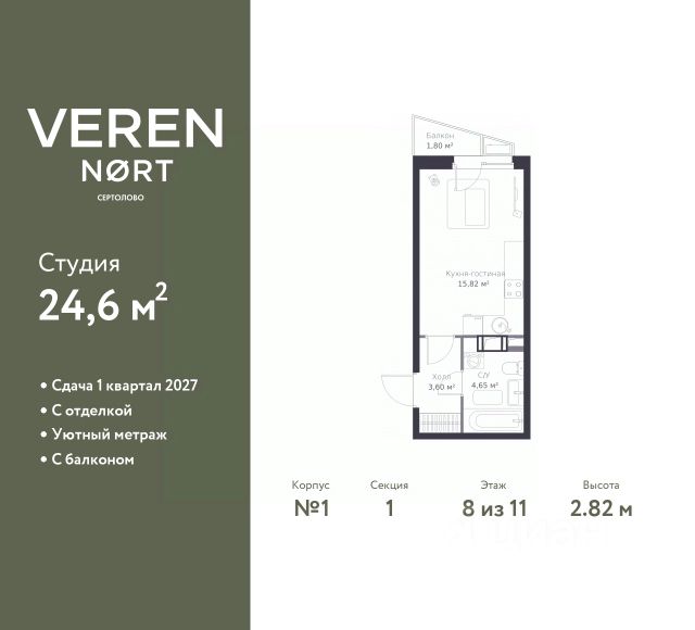 • ✓ В базе Циан 524 квартир-студий на 8 этаже в Ленинградской области