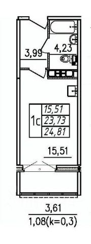 Продается квартира 231, по адресу г. Санкт-Петербург, поселок Шушары, Чудовская улица, дом 14, корпус 1, строение 1, корпус ЖК Монография в Монография на 8 этаже, с площадью 23.2 м2.