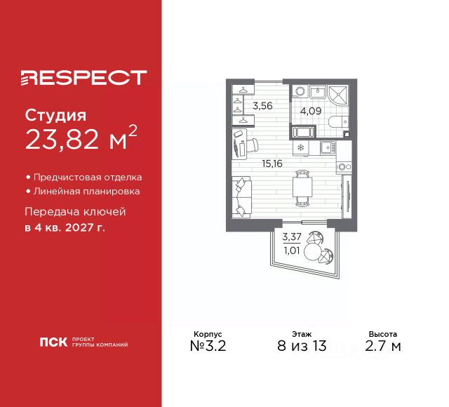 Цена действует при 100% оплате и на определенные ипотечные программы. Подробности — в отделе продаж по телефону. Продаётся студия в ЖК "Ручьи" на 8 этаже. Общая площадь составляет 21.20 кв. м. Квартира с чистовой отделкой. Жилой комплекс "Ручьи" располагается по адресу Санкт-Петербург, Красногвардейский. ЖК "Ручьи" - крупный проект комфорт-класса в Красногвардейском районе, на Пискаревском проспекте. В новостройке эргономичные планировки, уютные пешеходные дворы без машин, с детскими и спортивными площадками. Расположение комплекса: • 10 минут до станции метро "Академическая" на автобусе; • 10 минут до ж/д станции "Ручьи"; • 5 минут до КАД на автомобиле. Первая очередь уже заселена, во второй очереди появятся 27 домов. Квартиры передаются с отделкой. Парадные устроены на уровне земли - без ступеней и высоких порогов, а зайти внутрь можно как со стороны двора, так и с улицы. ЛСР построит на территории комплекса школу и два детских сада. Между домами будут обустроены игровые и спортивные площадки с турниками и тренажерами, удобные зоны отдыха для детей и взрослых. Первые этажи отведены под колясочные, магазины и сервисные службы. Здесь есть всё необходимое для комфортной жизни: магазины, аптеки, парикмахерские, пекарни и кофейни, достаточно спуститься на лифте во двор своего дома. Вокруг квартала пройдет велодорожка. Преимущества комплекса: - Большой выбор семейных квартир с просторной кухней-гостиной - Рядом Муринский и Пискаревский парки - Безбарьерная среда - Развитая социальная инфраструктура - Двор без машин Успейте приобрести квартиру на выгодных условиях! Чтобы узнать подробности, обращайтесь за консультацией по телефону.