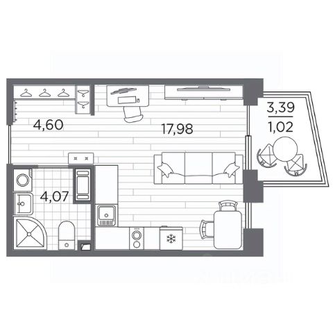 Однокомнатная квартира-студия от застройщика с предчистовой отделкой в ЖК "RESPECT" на 8 этаже. Общая площадь: 32.8 кв.м., площадь гостиной 20.8 кв.м., из которых 5 кв.м. выделено под кухонную зону. Все окна выходят на одну сторону. В квартире один балкон, один совмещенный санузел. Высота потолков 2.7 м. Квартира будет сдана с отделкой WHITE BOX, в которую включены следующие виды работ: - заливка стяжки; - установлена система отопления квартиры; - подготовлены потолки; - все стены выровнены, загрунтованы и отштукатурены; - электрическая проводка разведена по комнатам. Квартира будет готова к чистовой отделке. Дом монолитный, многоподъездный, переменной этажности, от 10 до 13 этажей. Квартира находится в 1-й секции высотой 13 этажей в корпусе 3.2. На этаже 5 квартир. В подъезде 1 пассажирский и 1 грузовой лифт. Начало строительства - 3 квартал 2025 года. Окончание строительства - 4 квартал 2027 года. Оформление сделки по договору долевого участия. В шаговой доступности от жилого комплекса расположены станции метро (расстояние по прямой): "Лесная" (800 м), "Площадь Мужества" (1.4 км), "Выборгская" (1.9 км), также недалеко от этого корпуса находятся станции метро: "Академическая", "Политехническая". Жилой квартал "RESPECT" строится на Полюстровском пр, 87, в одной из самых востребованных локаций Петербурга. В 10 минутах пешком - метро "Лесная" и в 10 минутах на транспорте - Петроградская сторона. Высота домов от 7 до 13 этажей. Квартиры сдаются с отделкой white box и с чистовой отделкой. На территории Respect строится школа на 1125 учащихся и детский сад на 240 мест. Запроектированы собственная газовая котельная, закрытая территория, дворы без машин и подземные паркинги с лифтами. В проекте предусмотрены трапециевидные балконы или остекленные лоджии, которые, с одной стороны, исключают монотонность фасада, являясь декоративными элементами, с другой дополнительным функциональным пространством в квартирах. Цветовая гармония фасадов каждого дома раскрывает характер квартала. Коричневый цвет клинкерного кирпича со структурой водяных штрихов — цвет уюта и безопасности, сдержанности и надёжности. Вентилируемые фасады облицованы клинкерным кирпичом. Его высокая прочность позволяет давать 100 лет гарантии на этот материал. Водопоглощение клинкерного кирпича составляет менее 5%, за счет чего у него высокая теплопроводность и прочность. В квартале запроектированы внутренние закрытые территории дворов домов без доступа автомобилей и безбарьерная среда для велосипедистов и колясок. Предусмотрены IP-домофония с функцией дистанционного открывания калиток и парадных, а также дистанционный сбор показаний счетчиков и мобильное приложение для жителей. Для безопасности жителей квартала - круглосуточное видеонаблюдение и служба охраны. В каждой квартире предусмотрены внешние корзины для кондиционеров. Вся территория квартала будет связана единой концепцией благоустройства, разработанной ландшафтным бюро L.BURO. На эксплуатируемой кровле на уровне