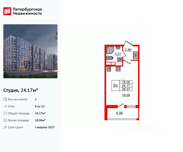 Предлагаю к покупке квартиру Студию в ЖК "Прайм Приморский"! О КВАРТИРЕ: *25,19 общая площадь *на 8 этаже Квартира полностью с чистовой отделкой от застройщика. На полу покрытие кварц.виниловый ламинат. На стенах обои под покраску, натяжные белые матовые потолки. Санузел совмещен и облицован крупноформатной керамической плиткой "белый и серый мрамор". Установлена вся сантехника и система "тёплый пол". Балкон застеклён, на полу выложен керамогранит, установлена розетка. О ДОМЕ: ЖК Прайм Приморский — комплекс высокого комфорт-класса на Парашютной улице, рядом с Шуваловским карьером и Новоорловским заказником. Популярный и благоустроенный Приморский район, живописные виды на лесной массив и водную гладь, стильная архитектура, креативные пространства и зона отдыха на крыше — идеальное сочетание для активной и счастливой жизни. Во дворе игровые площадки Setl Kids, которые способствуют физическому и интеллектуальному развитию ребенка на разных этапах взросления. О РАЙОНЕ: Инфраструктура хорошо развита, в пешей доступности есть всё самое необходимое для комфортной жизни. Из окон комплекса будут открываться живописные виды на Шуваловский карьер и Новоорловский заказник. За 15 минут можно доехать до метро Комендантский проспект и Пионерская. В пяти минутах на машине — выезды на КАД и ЗСД. Вам осталось только занести свои личные вещи и начать жить счастливо! Звоните прямо сейчас, с радостью отвечу на все вопросы!