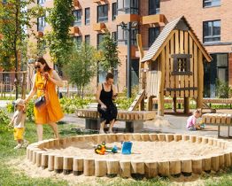 Проект жилого комплекса включает различные функциональные зоны как для активного, так и спокойного отдыха. Для юных жителей предусмотрены игровые площадки. Для создания уютной атмосферы в жилом комплексе предусмотрены малые архитектурные формы и приватные места для встреч с соседями. Во дворе будут высажены деревья и пышные кустарники.