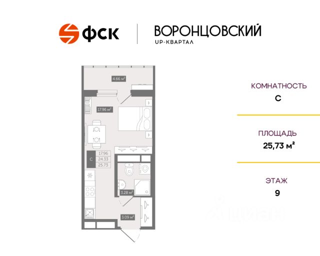 Продаем свою уютную квартиру-студию 24,8 кв.м. (без учета балкона)!