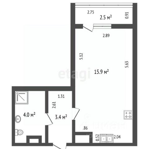 + Продуманное планировочное решение: просторная кухонная зона, спальное место, выделенная зона гардеробной, большой сан.узел.