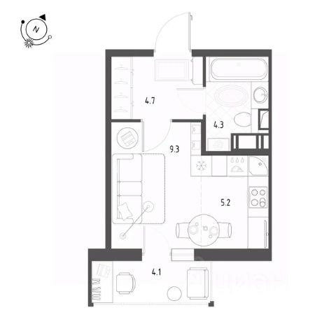 Продается квартира 39, по адресу г. Санкт-Петербург, поселок Шушары, Чудовская улица, дом 14, корпус 1, строение 1, корпус ЖК Монография в Монография на 9 этаже, с площадью 23.1 м2.