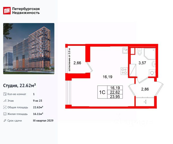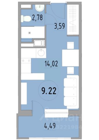Уютная студия 27,7 кв.м. эргономически удобной планировки с лоджией 1,4 кв.м., с двумя световыми проёмами и качественным косметическим ремонтом. В квартире выделена кухонная зона с окном (на полу уложен керамо-гранит) и зона отдыха с лоджией. Большой совмещенный санузел в кафеле и вместительная прихожая. Просторный тамбур на этаже закрыт от посторонних, можно хранить велосипеды, детские коляски и другой инвентарь.