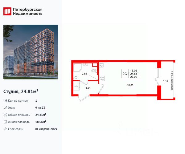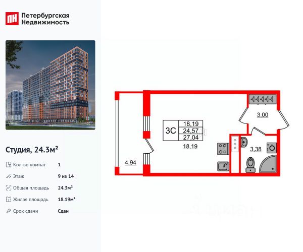 Уютная студия 27,7 кв.м. эргономически удобной планировки с лоджией 1,4 кв.м., с двумя световыми проёмами и качественным косметическим ремонтом. В квартире выделена кухонная зона с окном (на полу уложен керамо-гранит) и зона отдыха с лоджией. Большой совмещенный санузел в кафеле и вместительная прихожая. Просторный тамбур на этаже закрыт от посторонних, можно хранить велосипеды, детские коляски и другой инвентарь.