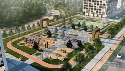Два здания "Правого берега-3" образуют уютное дворовое пространство, в котором располагаются тротуары с плиточным покрытием, детский городок, физкультурная площадка, газоны и цветники, деревья, кустарники.
