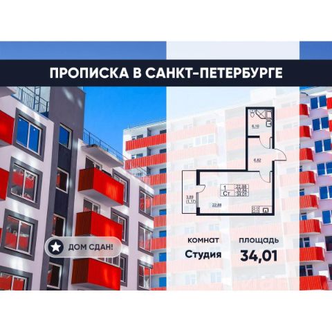 • ✓ В базе Циан 50 квартир-студий на 9 этаже рядом с метро Шушары