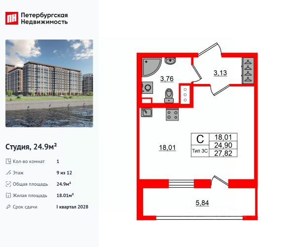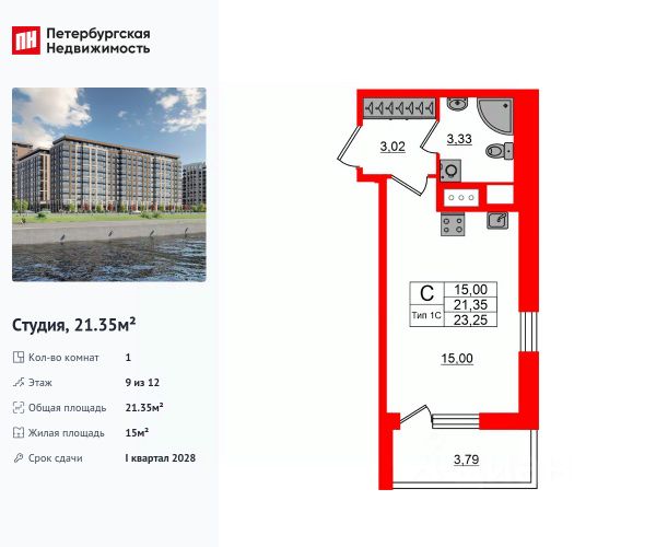 Цена со скидкой до 30% в прямой продаже от застройщика — только в этом месяце. На апартаменты действует беспроцентная рассрочка. Роскошные виды на Неву. Апартамент-студия в комплексе класса бизнес-лайт Zoom на Неве на 9-м этаже. Общая площадь 28,6. Предчистовая отделка. Zoom на Неве расположен в новом месте силы рядом с центром города на первой линии Октябрьской набережной в Невском районе, всего в 7 км от исторической части Санкт-Петербурга. Большой выбор эргономичных и максимально продуманных планировок позволит каждому найти вариант по душе. Панорамные виды на Неву, благоустроенные дворы, детская игровая комната, подземный паркинг, коммерческие зоны на первом этаже, это и многое другое делает Zoom на Неве идеальным местом для жизни. Особенности: - Панорамные виды на Неву и город; - 10 мин. до Парка Строителей, 15 мин. до Лондон-молла, Ленты, Максидома, 15 мин. до метро "ул. Дыбенко", 12 мин. до КАД, 10 мин. до центра; - Единая архитектурная концепция. Сдержанные и монументальные фасады в неоклассическом стиле; - Парадный лобби для жильцов. Единый вход в комплекс с администратором, зоной ресепшн и охраной, зоной для бесконтактной доставки посылок и еды; - Подземный отапливаемый паркинг с доступом из парадной; - Доступно 3 варианта отделки на выбор: черновая, предчистовая (White Box) и чистовая; - Зоны отдыха для взрослых и детей, Wi-Fi-покрытие во дворе и в паркинге, зоны для питомцев, арт-объекты и много другое. В шаговой доступности вся необходимая инфраструктура от детских садов и школ до супермаркетов и салонов красоты; - Все происходящее контролируется видеокамерами, а покой внутренней территории и безопасность ваших детей гарантируется полным отсутствием транспорта во дворах в концепции "без машин".