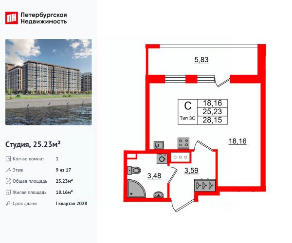 Цена со скидкой до 30% в прямой продаже от застройщика — только в этом месяце. При покупке апартаментов - паркинг за полцены. На все апартаменты действует беспроцентная рассрочка. Купите на распродаже! Покупка недвижимости в Zoom на Неве сейчас со скидкой до 30% позволит через 2 года получить доход до 6 300 000 руб. Роскошные виды на Неву. Апартамент-студия в комплексе класса бизнес-лайт Zoom на Неве на 9-м этаже. Общая площадь 18,52. Без отделки. Zoom на Неве расположен в новом месте силы рядом с центром города на первой линии Октябрьской набережной в Невском районе, всего в 7 км от исторической части Санкт-Петербурга. Большой выбор эргономичных и максимально продуманных планировок позволит каждому найти вариант по душе. Панорамные виды на Неву, благоустроенные дворы, детская игровая комната, подземный паркинг, коммерческие зоны на первом этаже, это и многое другое делает Zoom на Неве идеальным местом для жизни. Особенности: - Панорамные виды на Неву и город; - 10 мин. до Парка Строителей, 15 мин. до Лондон-молла, Ленты, Максидома, 15 мин. до метро "ул. Дыбенко", 12 мин. до КАД, 10 мин. до центра; - Единая архитектурная концепция. Сдержанные и монументальные фасады в неоклассическом стиле; - Парадный лобби для жильцов. Единый вход в комплекс с администратором, зоной ресепшн и охраной, зоной для бесконтактной доставки посылок и еды; - Подземный отапливаемый паркинг с доступом из парадной; - Доступно 3 варианта отделки на выбор: черновая, предчистовая (White Box) и чистовая; - Зоны отдыха для взрослых и детей, Wi-Fi-покрытие во дворе и в паркинге, зоны для питомцев, арт-объекты и много другое. В шаговой доступности вся необходимая инфраструктура от детских садов и школ до супермаркетов и салонов красоты; - Все происходящее контролируется видеокамерами, а покой внутренней территории и безопасность ваших детей гарантируется полным отсутствием транспорта во дворах в концепции "без машин".