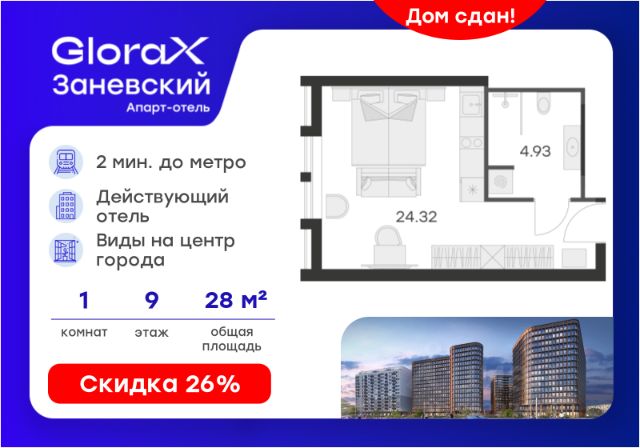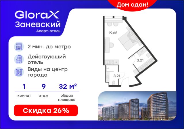 Продается апартамент-студия на 9-м этаже в сданном Апарт-комплексе бизнес-класса "GloraX Заневский". Ключи сразу! Общая площадь лота составляет 48,89 кв. м, из которых 43,52 кв. м отведено под жилую. Номер апартамента - 925. Преимущества: - Полная чистовая отделка - Возможность покупки меблировка и техника - Вход по ключ-карте - Прачечная на 1 этаже - Возможность дозаказа отельного сервиса - Программы доходности - Летний бар и променад - Воркаут площадка - Pet-friendly Апартаменты "GloraX Заневский" - проект бизнес-класса с развитой инфраструктурой, удовлетворяющей все потребности самых взыскательных гостей. Располагается в одном из наиболее перспективных, районов Петербурга в 2х минутах от метро "Ладожская" и в 10 минутах от Невского проспекта. В "GloraX Заневский" есть все, что необходимо для комфортной жизни, работы и отдыха. Инфраструктура, покрывающая все потребности и ожидания собственников и арендаторов. В радиусе 150 метров находятся супермаркеты с возможностью доставки продуктов прямо до дверей апартаментов. На 1000 кв. м. общественных пространств расположится уютный лобби-бар, ресторан мировой кухни на 80 человек и оборудованные коворкинги. В апартаментах "GloraX Заневский" выполнена современная отделка с использованием высококачественных экологичных материалов. В проекте предусмотрен подземный отапливаемый паркинг на 100 мест, куда можно спуститься на лифте прямо от дверей апартаментов. Цена указана при 100% оплате или стандартной ипотеке. Узнайте подробности в Отделе продаж.