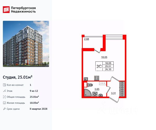 • ✓ В базе Циан 5 квартир-студий на 9 этаже в округе Невская застава в Санкт-Петербурге