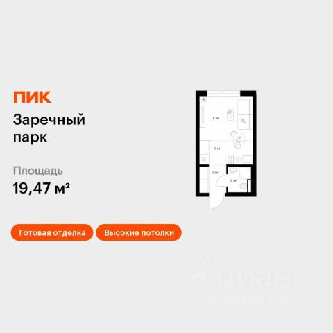 Продаётся квартира-студия площадью 19,95 кв.м на 7 этаже 16 этажного дома (Корпус 4, Секция 5) проекта ПИК Заречный парк. Светлый просторный подъезд на уровне земли, функциональная планировка, большие окна, c отделкой. Жилой квартал "Заречный парк" расположен в районе Новое Девяткино Ленинградской области. В 7 минутах на автомобиле - станция метро "Девяткино", до КАД - 10 минут на машине. В 2026 году будет достроена шестиполосная трасса в обход Мурино, примыкающая к Пискарёвскому проспекту. Она станет дополнительным выездом на КАД для жителей "Заречного парка". Проект включает восемь домов высотой от 15 до 24 этажей, три многоуровневых паркинга, детский сад и школу. В зелёных дворах-парках будут оборудованы современные детские и спортивные площадки, обустроены места для отдыха. На первых этажах разместятся магазины, кафе и другие сервисы. Планировки продуманы так, чтобы каждый квадратный метр жилой площади можно было эффективно использовать. Все квартиры сдаются с готовой отделкой. Артикул 1060494 (Застройщик ООО "СПЕЦИАЛИЗИРОВАННЫЙ ЗАСТРОЙЩИК ИНВЕСТАЛЬЯНС") [cn_sbp_1857798] Продается квартира-студия в ипотеку в деревне Новое Девяткино Всеволожского района.