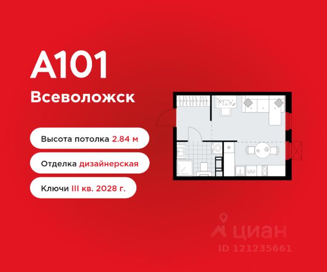 Студия площадью 20.60 в ЖК "А101 Всеволожск" c лоджией на 8 этаже. Квартира с предчистовой отделкой. Вид из окна во двор. В квартире 1 санузел. Высота потолков 2.80 м. ОТДЕЛКА Квартира с предчистовой отделкой предполагает: качественную стяжку на полах под финишное покрытие, потолок с обеспыливающей грунтовкой белого цвета, ровные стены с покрытием штукатурка. Выполнены все работы по проведению электрики. На все отделочные работы от застройщика предоставляется гарантия. Если вы хотите дозаказать дизайнерскую отделку, обращайтесь к нашими специалистами. ДВОРЫ И ОКРУЖЕНИЕ Большая часть территории комплекса отведена под зелёные благоустроенные зоны: теневые сады, уютные городские пространства с развитой тротуарной сетью и велодорожками - всё для вашего активного и здорового образа жизни. Внутренние дворы закрыты от посторонних и свободны от автомобилей. Каждый дом оснащён высокотехнологичными системами видеонаблюдения и контроля доступа, обеспечивая максимум безопасности и спокойствия для вас и ваших близких. Окружение района - живописный природный ландшафт. Всего в 5 минутах ходьбы располагается Ковалёвский лесопарк - источник кислорода, пространство для спорта, отдыха и приятных прогулок на свежем воздухе. ПАРАДНАЯ Мягкая мебель, живые растения и натуральные материалы в отделке формируют современный и уютный интерьер входной группы, радующий глаз и создающий приятную атмосферу для встреч с гостями. Для вашего удобства реализован безбарьерный вход, отвечающий требованиям доступной среды для всех жильцов, а также в каждой парадной имеется отдельное помещение для хранения колясок и велосипедов. ИНФРАСТРУКТУРА: В жилой застройке сохранена естественная среда благодаря разнообразию растительности, извилистым дорожкам и уличной мебели из натуральных материалов. Здесь находится насыщенная сеть экотроп протяжённостью более 10 км прямо у дома, а просторная площадь позволяет жителям приятно провести время, общаться с соседями и отдыхать. Также предусмотрены зоны для отдыха и специально оборудованные спортивные площадки для активного образа жизни на свежем воздухе. На территории района ГК "А101" создает современный учебно-образовательный кластер, В "А1О1 Всеволожск" предусмотрена современная школа на 1300 учеников и 2 детских сада Всё самое необходимое - рядом с вашим домом. Выпить утром кофе в уютном кафе или поужинать с друзьями, отвести детей на развивающие занятия или игровую площадку, купить продукты и товары первой необходимости. В проекте запланировано уникальное гастрономическое пространство, располагающееся на основном пешеходном бульваре жилого района. Территория дополнительно оборудована местами отдыха на свежем воздухе, а для ресторанов и кафе будет предусмотрена возможность организации летних веранд. ЗАСТРОЙЩИК: ГК "А101" - один из крупнейших застройщиков России. Каждая восьмая квартира, проданная в Москве, находится в районе, построенном компанией, что подчеркивает её значимость и успех на рынке недвижимости. Квартира-студия в ипотеку в Всеволожском районе Ленинградской области.