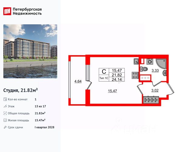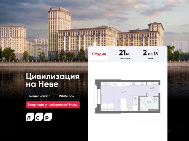 Продаётся студия в ЖК "Цивилизация на Неве" на 2 этаже. Общая площадь составляет 28.10 кв. м. Квартира с white box отделкой. Жилой комплекс "Цивилизация на Неве" располагается по адресу Санкт-Петербург, Невский. "Цивилизация на Неве" - видовые дома бизнес-класса, расположенные вдоль набережной Невы, всего в 7 км от исторического центра. Жилой комплекс идеально выражает особый дух, свойственный знаменитым просторным кварталам постройки сталинской эпохи в Москве и на Московском проспекте в Петербурге. Расположение: • 15 мин на авто до Невского проспекта; • 15 мин на авто до Московского вокзала; • 5 мин на авто до станции метро "Улица Дыбенко"; • 14 мин (7 км) до КАД. Уникальный дизайн входных зон, закрытая территория, видеонаблюдение и охрана, подземный паркинг с лифтом и другие особенности проекта отвечают заявленному классу. В каждом дворе предусмотрено озеленение по индивидуальному ландшафтному проекту с благородными растениями и кустарниками. Преимущества: • Закрытая территория с видеонаблюдением; • Подземный паркинг с лифтом; • Детская площадка на приватной безопасной территории; • Несколько детских садов и школ; • Инфраструктура шаговой доступности на первых этажах корпусов. Успейте приобрести квартиру на выгодных условиях! Чтобы узнать подробности, обращайтесь за консультацией по телефону. Продам квартиру-студию в ипотеку рядом с метро Проспект Большевиков.