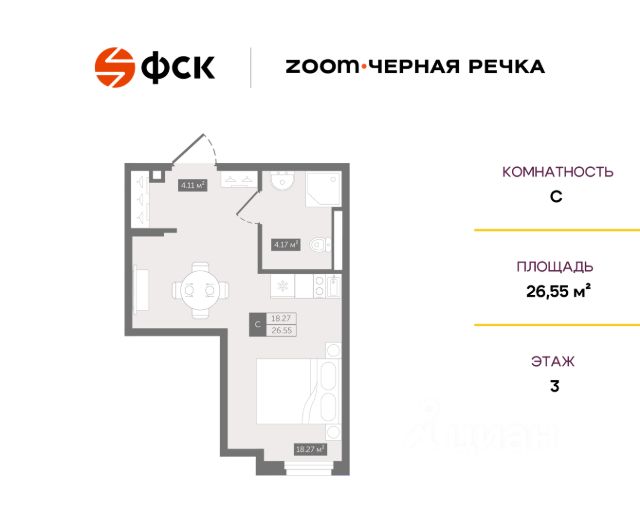 Цена со специальной скидкой в прямой продаже от застройщика — только в этом месяце. Апартамент-студия в комплексе класса бизнес-лайт Zoom Чёрная Речка на 10-м этаже. Общая площадь 22,85. Предчистовая отделка. Zoom Черная речка это новый комплекс класса бизнес-лайт от крупного федерального застройщика ФСК. Zoom Черная речка расположен в престижном Приморском районе непосредственно на берегу Черной речки. В нем есть все необходимое для жителей разных возрастов и интересов от отапливаемого подземного паркинга и круглосуточного видеонаблюдения до коворкинга на открытом воздухе, интерактивных детских площадок и зон отдыха. Собственная набережная будет оборудована деревянными настилами и скамейками, благодаря чему вы сможете с комфортом проводить время у воды. Лобби на первом этаже современное и стильное пространство, где вы можете выпить кофе, подождать такси или поработать с ноутбуком. В отдельных лотах предусмотрено все для оборудования камина. Новый уровень уюта в вашем доме. Приобретение возможно в том числе с помощью ипотеки и рассрочки. Продам квартиру-студию в ипотеку в округе Чёрная речка в Санкт-Петербурге.