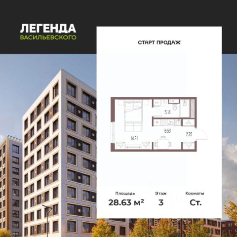 1-комн. квартира-студия с предчистовой отделкой в ЖК "ЛЕГЕНДА Васильевского" на 2 этаже. Общая площадь: 30.1 кв.м., площадь гостиной 19.65 кв.м., из которых 5 кв.м. выделено под кухонную зону. Все окна выходят на одну сторону. В квартире один совмещенный санузел. Высота потолков 2.72 м. "ЛЕГЕНДА Васильевского" жилой квартал в минутной доступности от Финского залива, главного креативного хаба Санкт-Петербурга Севкабель Порта и других точек притяжения. Современные инженерные и технические решения, повышающие качество жизни TechnoBox включают в себя: стационарный и удаленный контроль дома, систему вентиляции Air Design - здоровое дыхание без лишнего шума, мультисервисную сеть, объединяющую коммуникационные системы, удаленное управление электроприборами, контроль отопления в каждом помещении, поддерживающий оптимальный температурный баланс во время "холодного" периода", датчики протечки, датчик открытия входной двери. Мультисервисная сеть (МСС) объединяет ключевые слаботочные системы дома, задавая им единый высокий стандарт работы, обеспечивая надёжность их функционирования и управления. Квартира готова к декорированию. Застройщиком сделана шумоизоляция; стены подготовлены для отделки; проведена электрика с учетом рекомендаций по расстановке мебели и бытовой техники; выровнен пол. В каждой квартире установлена взломостойкая входная дверь, окна со специальным термоизолированным алюминиевым профилем. Двор жилого комплекса "ЛЕГЕНДА Васильевского" закрыт. Проект состоит из шести разноформатных корпусов с ритмичными фасадами в духе пост-конструктивизма. Геометрия жилого комплекса состоит из четко простроенных осей, чередующих открытые пространства и объемы корпусов, каждый из которых обладает своим визуальным кодом индивидуальным рисунком фасада и цветовой палитрой. Корпуса образуют периметр с общественными пространствами: площадью с кафе, магазинами и пешеходным променадом с детскими игровыми хабами, местами для спокойного отдыха и workout-зоной. На территории комплекса предусмотрены теплый подземный паркинг и два наземных 4-х этажных паркинга. Продам квартиру-студию в ипотеку в округе Гавань в Санкт-Петербурге.