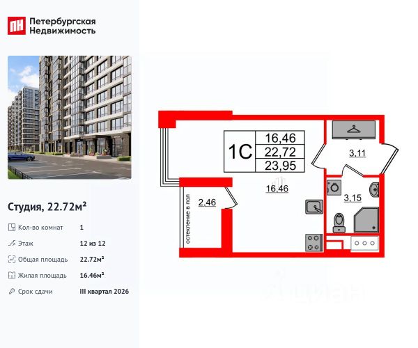 Продается уютная студия от застройщика в жилом комплексе "Титул в Московском" в престижном Московском районе. До метро можно добраться пешком всего за 25 минут. Удобная, классическая, функциональная европланировка, вместительная прихожая 3.02 м². Общая площадь студии - 24.28 м², жилая 18 м², высота потолка 2.77 м. Квартира продается с отделкой "NORD LINE WHITE ВК". Что особенного в ЖК "Титул в Московском"? • Престижный Московский район • Авторская архитектурная концепция • 2 центральные входные группы с ресепшн и лаундж-зонами • Кленовая аллея с арт-стеллой, цветочная аллея и сад трав • Уютные дворы-патио, площадки SetlKids и SetlSport • Инновационный Лицей Setl с оригинальной архитектурной концепцией и уникальной образовательной средой Продам квартиру-студию в ипотеку в округе Новоизмайловское в Санкт-Петербурге.