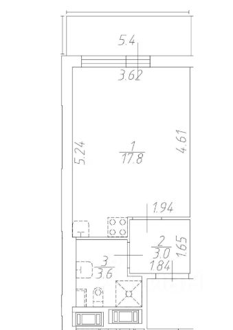 Общая площадь - 24,49 м2 + лоджия 5,4 м2