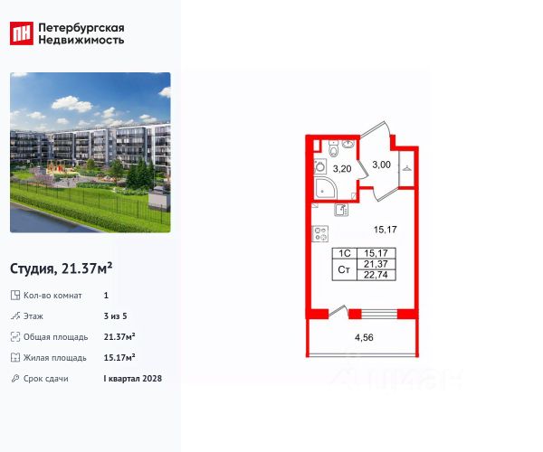 Продается уютная студия от застройщика в жилом комплексе "Парадный ансамбль" в престижном Московском районе. До метро можно добраться на транспорте всего за 20 минут. Удобная, классическая, функциональная европланировка, вместительная прихожая 3 м². Общая площадь студии - 21.37 м², жилая 15.17 м², высота потолка 2.77 м. Квартира продается с отделкой "Норд Лайн светлый". Что особенного в ЖК "Парадный ансамбль"? • Уникальные квартиры. Хай Флет (High Flat) на последних этажах, палисадники у квартир на первом этаже, семейные секции, квартиры с саунами и окном в ванной • Масштабное малоэтажное строительство в престижном Московском районе • Рекреационные зоны: парадный парк в центре квартала, ручей с собственной набережной, центральная площадь, ресторанный комплекс и пешеходный бульвар • Фасады из керамогранита и кирпича с яркими и акцентными входными группами • Две самые большие площадки Setl Kids и Setl Sport • Инновационный Лицей Setl с оригинальной архитектурной концепцией и уникальной образовательной средой Продам квартиру-студию в ипотеку в округе Пулковский меридиан в Санкт-Петербурге.