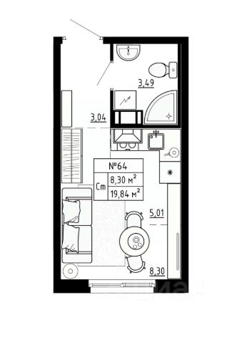 Расположена на 5 этаже.