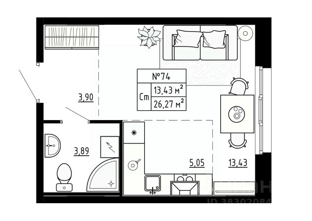 Общая приведенная площадь квартиры 85.06 м2