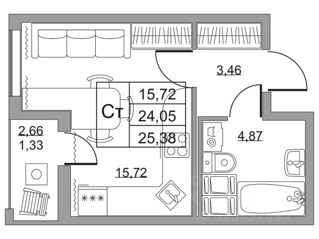 Cрок сдачи - 4 кв 2028 Продается квартира студия в жилом комплексе "Высота" от ГК СТОУН нa 2 этаже. Общaя площадь cоcтaвляeт 26.90 кв. м. Квартира с отделкой под ключ. Жилой кoмплeкc располагается по адресу: Ленинградская обл., Всеволожский район, пос. Бугры, Гаражный проезд, ул. Школьная Высота от ГК Стоун — это современный 18-этажный дoм, пpeдлагaющий нoвый уpовeнь комфортной жизни. Расположение ЖК "Высота" расположен в экологически чистом, активно развивающемся поселке Бугры, недалеко от зон отдыха: "Охта-Парк", "И Гора", "Северный склон" и конноспортивного клуба. Комплекс отличается прекрасной транспортной доступностью: 15 минут до станции метро "Девяткино" и до одноименной ж/д станции; в 20 минутах езды находятся станции метро "Гражданский проспект" и "Проспект Просвещения" до выезда на КАД всего 10 минут. Комплекс состоит из одного дома, разделенного на 7 секций. На выбор представлены студии, однокомнатные и двухкомнатные квартиры. Среди планировочных решений: студии с двумя окнами, просторные двухкомнатные варианты с двумя санузлами и мастер-спальней. Все квартиры сдаются с готовой чистовой отделкой. Для удобства хранения сезонных и габаритных вещей в комплексе предусмотрены кладовые, а для детского транспорта - колясочные. Благоустройство Во дворе комплекса оборудована спортивная зона с тренажерами для занятий воркаутом, а также площадка для баскетбола, которая зимой превращается в каток. Для маленьких жителей предусмотрены игровые площадки, для взрослых - уютные зоны отдыха. На территории будут высажены деревья и пышные кустарники. Удобство добавляют велопарковки, расположенные у парадных и во дворе, а также отдельные входы на автостоянки. Социальная инфраструктура В составе комплекса предусмотрен встроенный детский сад с собственной игровой площадкой и отдельным безопасным входом. Дошкольное учреждение рассчитано на 75 мест. Ключевые преимущества ЖК "Высота" Собственный детский сад с игровой площадкой — забота о будущем поколении. Близость к метро — экономия времени и сил. Развитая инфраструктура — всё необходимое под рукой. Каток и баскетбольное площадка — здоровье и активный образ жизни. Большой выбор планировок — квартира вашей мечты. Полная чистовая отделка в подарок — заезжай и живи! Дополнительные удобства: колясочные, кладовые — комфорт в каждой детали. Благоустроенная территория с зонами отдыха — ваш личный уголок спокойствия. Безбарьерная среда— забота о каждом.