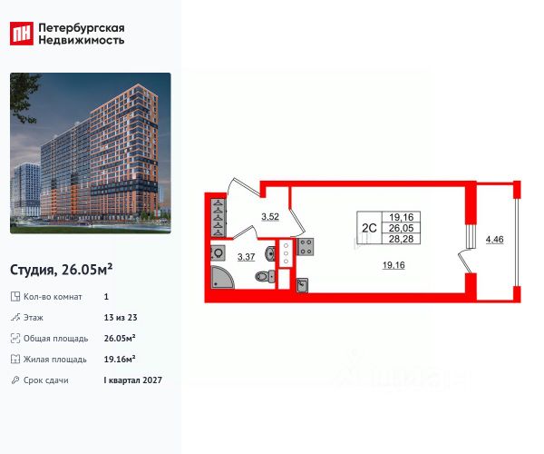 Квартира сдаётся в II квартале 2026 года.