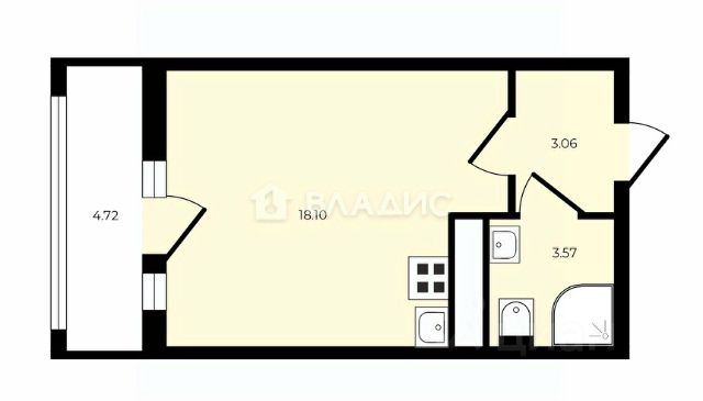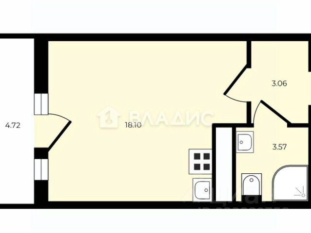 Комната 18.92 кв. м. , прихожая 3.04 кв. м. , санузел 3 кв. м.,
