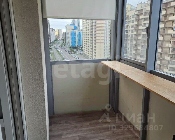 Уютная студия (29,8 кв. м) на 4 этаже 22-этажного одноподъездного дома. Высота потолков — 2.75, приятный вид из панорамного окна: школьный двор, вечно-зелёное поле, простор и огоньки домов.