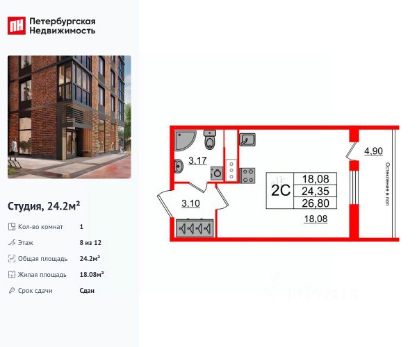 Уникальное предложение квартира -студия с потолками 3 метра. Престижный Московский район Санкт-Петербурга. Удобная квадратная планировка комнаты позволяет сделать жилье функциональным и комфортным. Огромную лоджию (5,3 м) можно оборудовать в качестве дополнительного рабочего места или зоны отдыха. Квартира расположена на последнем 12-м этаже и имеет уникальное преимущество увеличенную высоту потолков 3м. Высокие потолки делают помещение визуально больше, дают ощущение простора, улучшают циркуляцию воздуха и позволяют разместить в квартире дополнительные функциональные зоны хранения. Благодаря увеличенным окнам в квартиру попадает много естественного света, что придает квартире больше легкости и уюта. Жилой комплекс новый, ухоженный, от известного Санкт-Петербургского застройщика. Предусмотрена закрытая территория двора без машин, что обеспечивает безопасность и спокойствие. Также имеется подземная парковка, что является несомненным преимуществом в условиях города. Благодаря близости к основным магистралям и остановкам общественного транспорта, жители смогут легко добраться до любой точки города. В шаговой доступности — школы, детские сады, фитнес-центры, медицинские учреждения, магазины и кафе. Приобретая эту квартиру, вы выбираете комфортное проживание в современном жилом комплексе с развитой внутренней инфраструктурой. Это отличный выбор для тех, кто ценит качество жизни, безопасность и предпочитает жить в престижном районе. Один собственник. В квартире никто не живет. Обременений нет. Полная цена в договоре. Приглашаем вас оценить все преимущества данной квартиры лично!