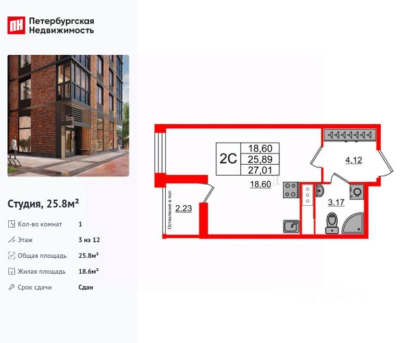 • ✓ В базе Циан 23 квартир-студий в кирпично-монолитном доме на проезде 1-й Предпортовый в Санкт-Петербурге