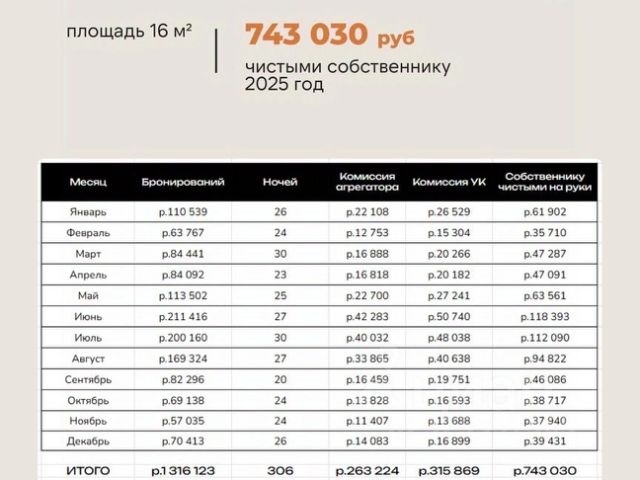 подходит как для проживания, так и для сдачи в аренду через управляющую компанию