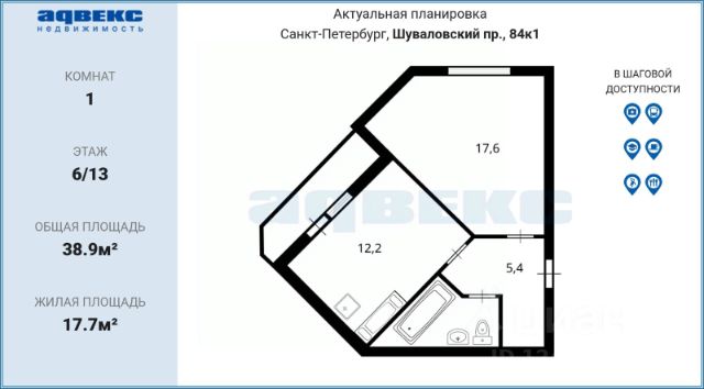 • ✅ Объект наибольшей площади: 34,3 м²