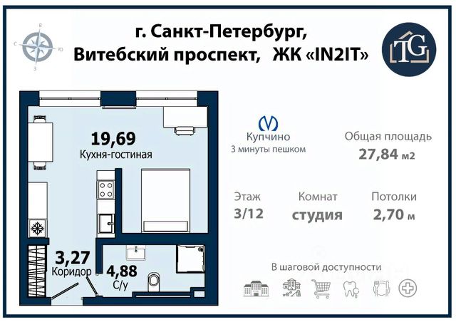 Купить квартиру-студию в кирпично-монолитном доме рядом с метро Дунайская