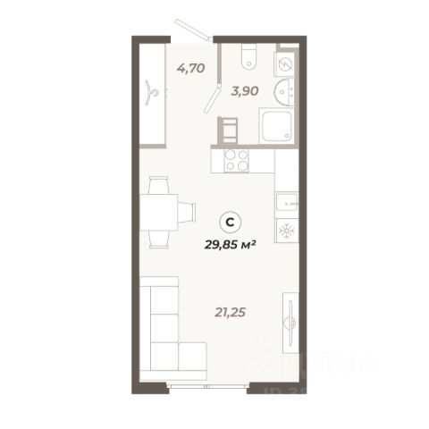 Кухня-гостиная со столовой зоной. Современная кухонная мебель, со встроенным холодильником, посудомоечной машиной, индукционной варочной панелью, и духовым шкафом. (техника проверенных марок Воsсh, Gоrеnjе, АЕG.) Остров с барными стульями. Столешница компакт-плита (hpl столешница). В столовой зоне стол из шпона дуба на 4 персоны с мягкими стульями из массива бука. В зоне гостиной диван-кровать, ТВ 55 дюймов, оформленная ТВ зона с хранением.