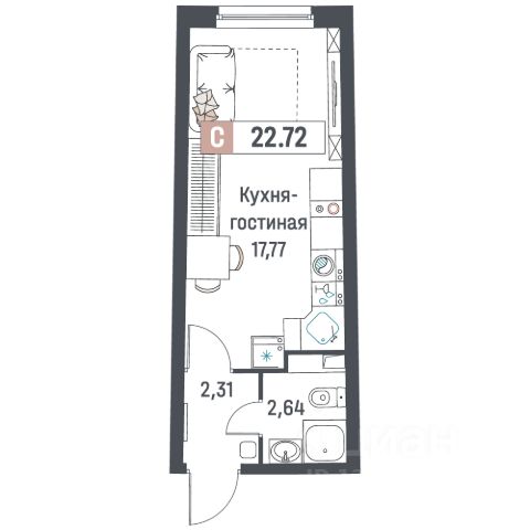 Предлагаем вашему вниманию студию в Ленинградской области в 20 минутах езды общественным транспортом от станции метро "Девяткино".
