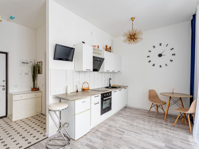 В квартире сделан косметический ремонт. Пространство студии организовано максимально функционально: есть все необходимое для комфортного проживания. Очень теплая. Санузел совмещенный и оборудован современной сантехникой. Система отопления оборудована датчиками и регуляторами. Свой ИТП в доме. ГВС не отключают летом.