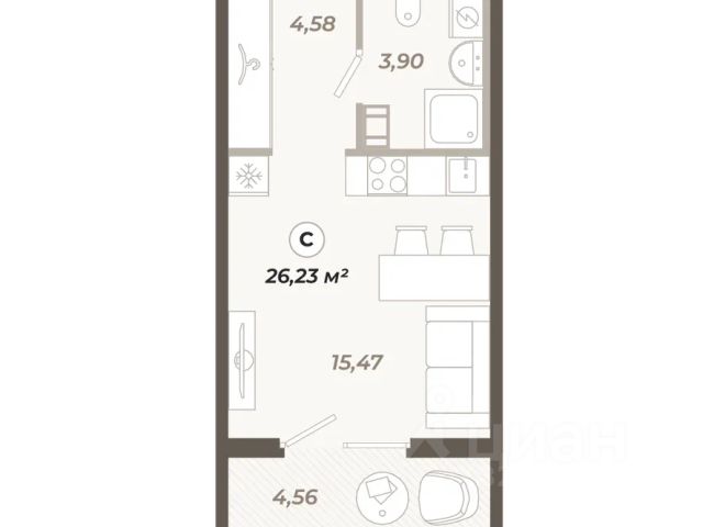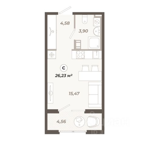 - 2ЕВРО квартира с кладовкой: комната 16,8 м2 и кухня-гостиная 11,8 м2, оборудованный санузел, просторная прихожая;