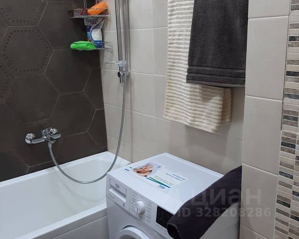 Ванная комната со стиральной машиной и большой душевой кабиной. Полы с подогревом в санузле и коридоре — уют и экономия тепла.
