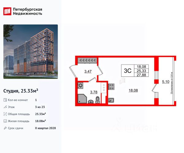Продаётся квартира - студия от застройщика.